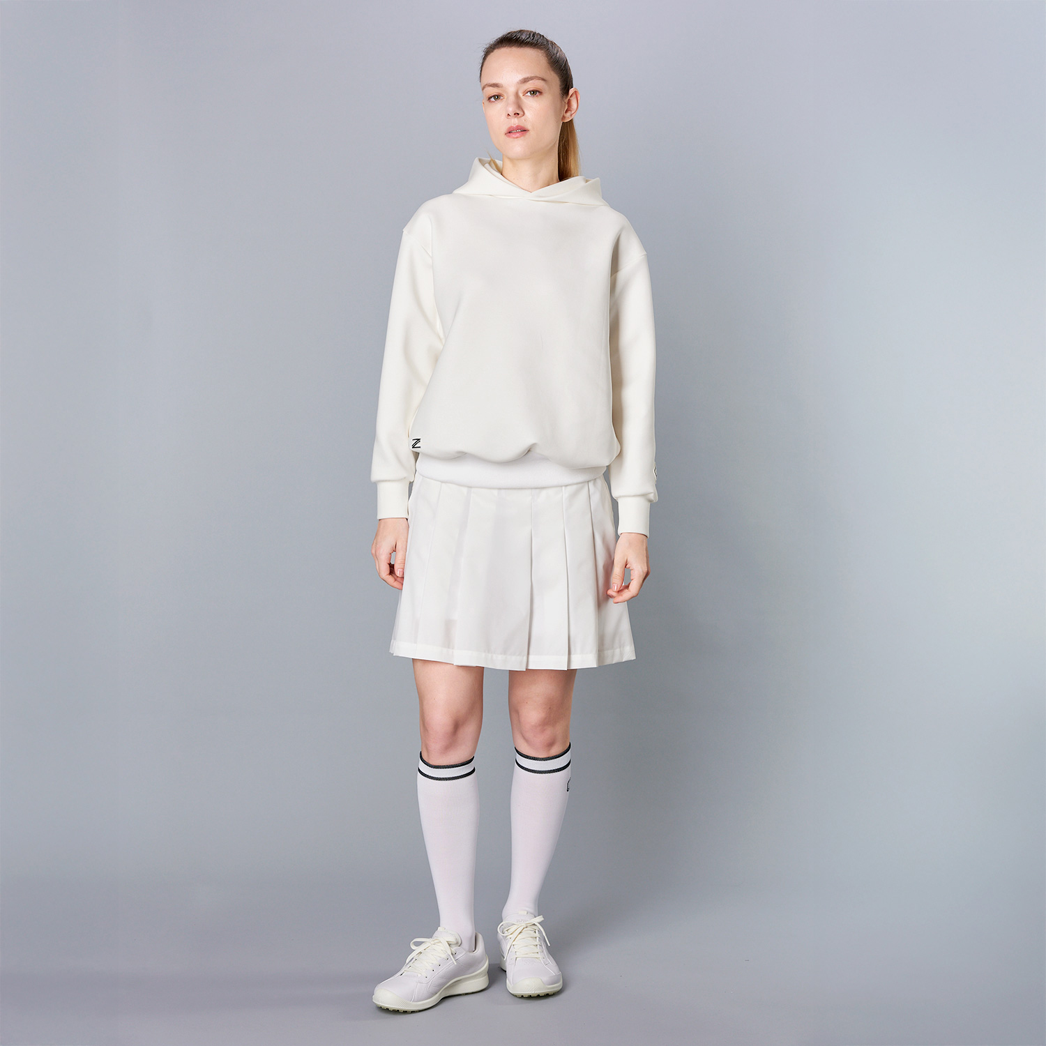 Stretch Taffeta Pleated SK(ウエストポーチ付き)(WHT)