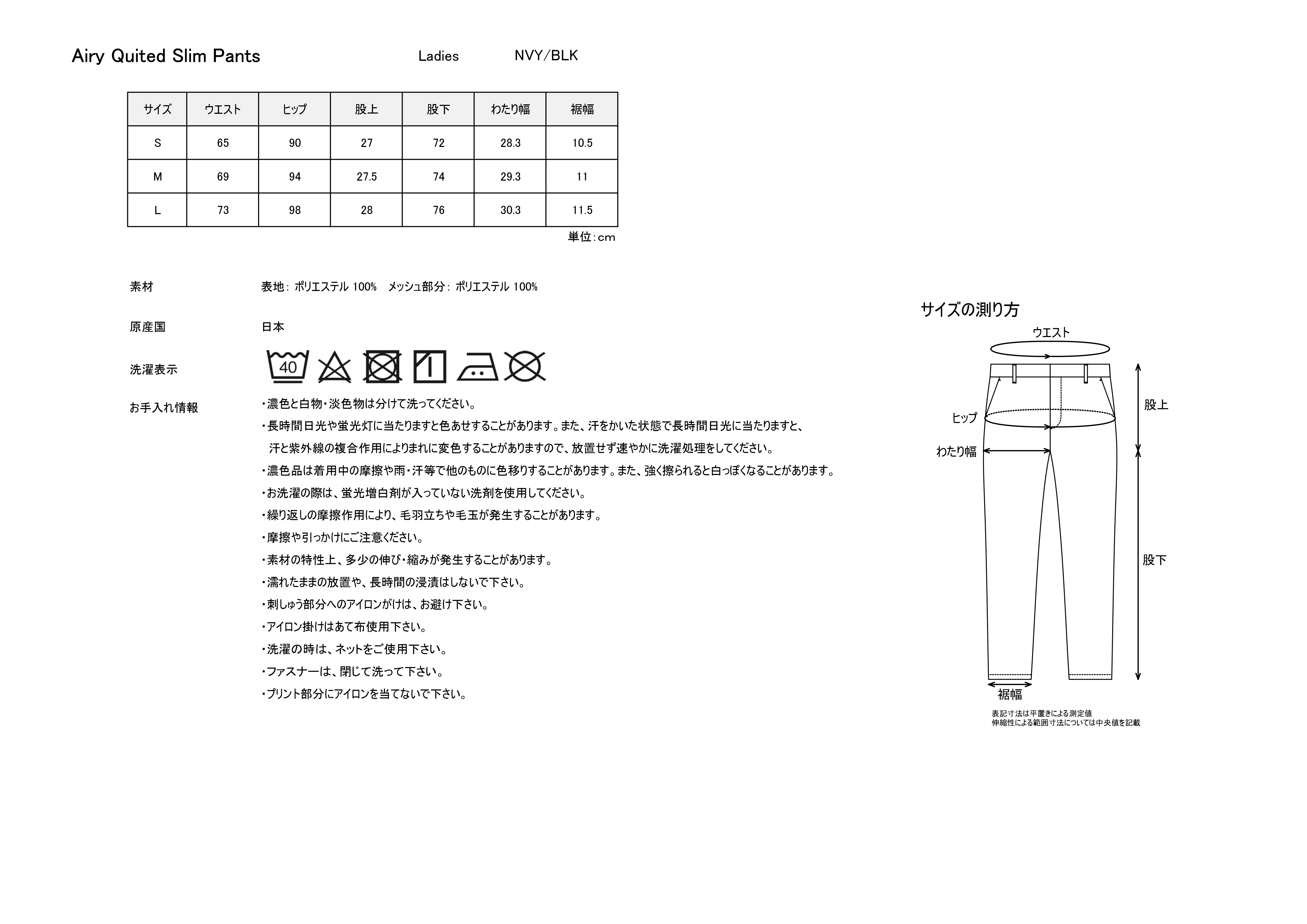 Airy Quilted Slim Pants (NVY/BLK/WHT)